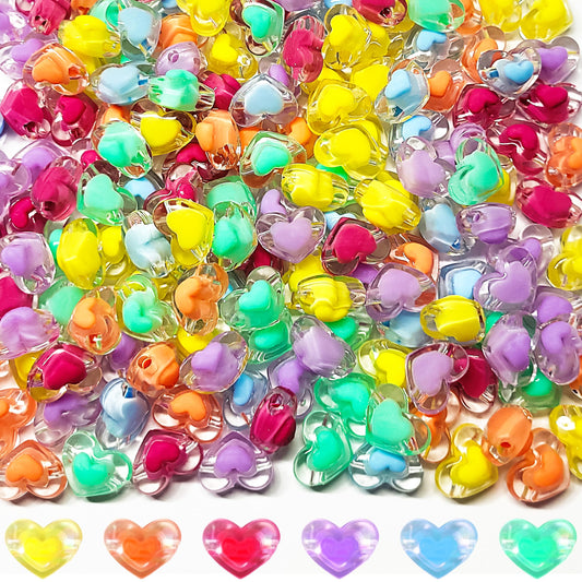 Transparent Acrylic Heart Beads with Inner Crystal