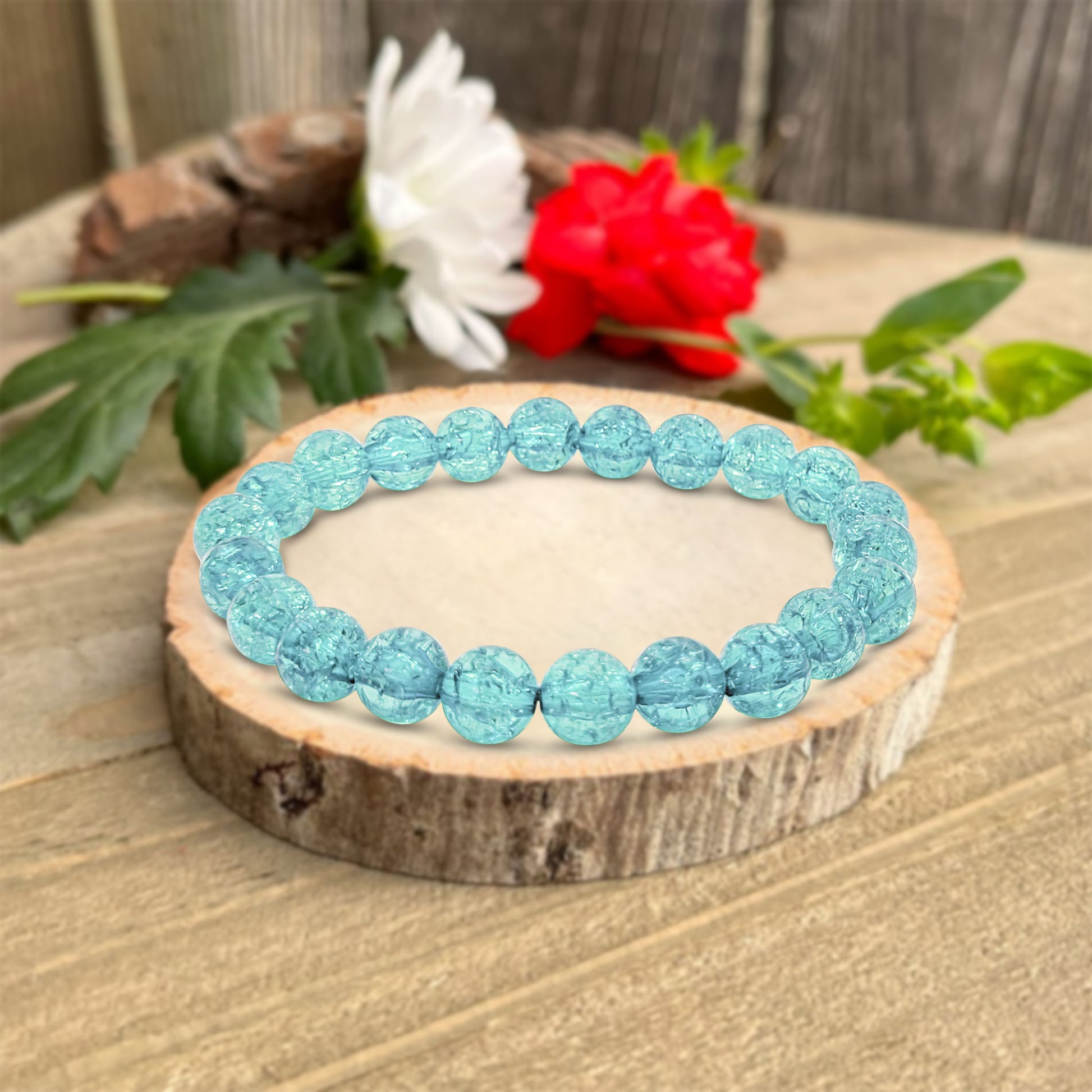 A stylish bracelet made with glossy crackle acrylic beads, offering a colourful and elegant look for everyday wear. Lightweight, comfortable, and perfect for gifting or accessorising with any outfit. Ideal for those who love simple yet eye-catching jewellery.