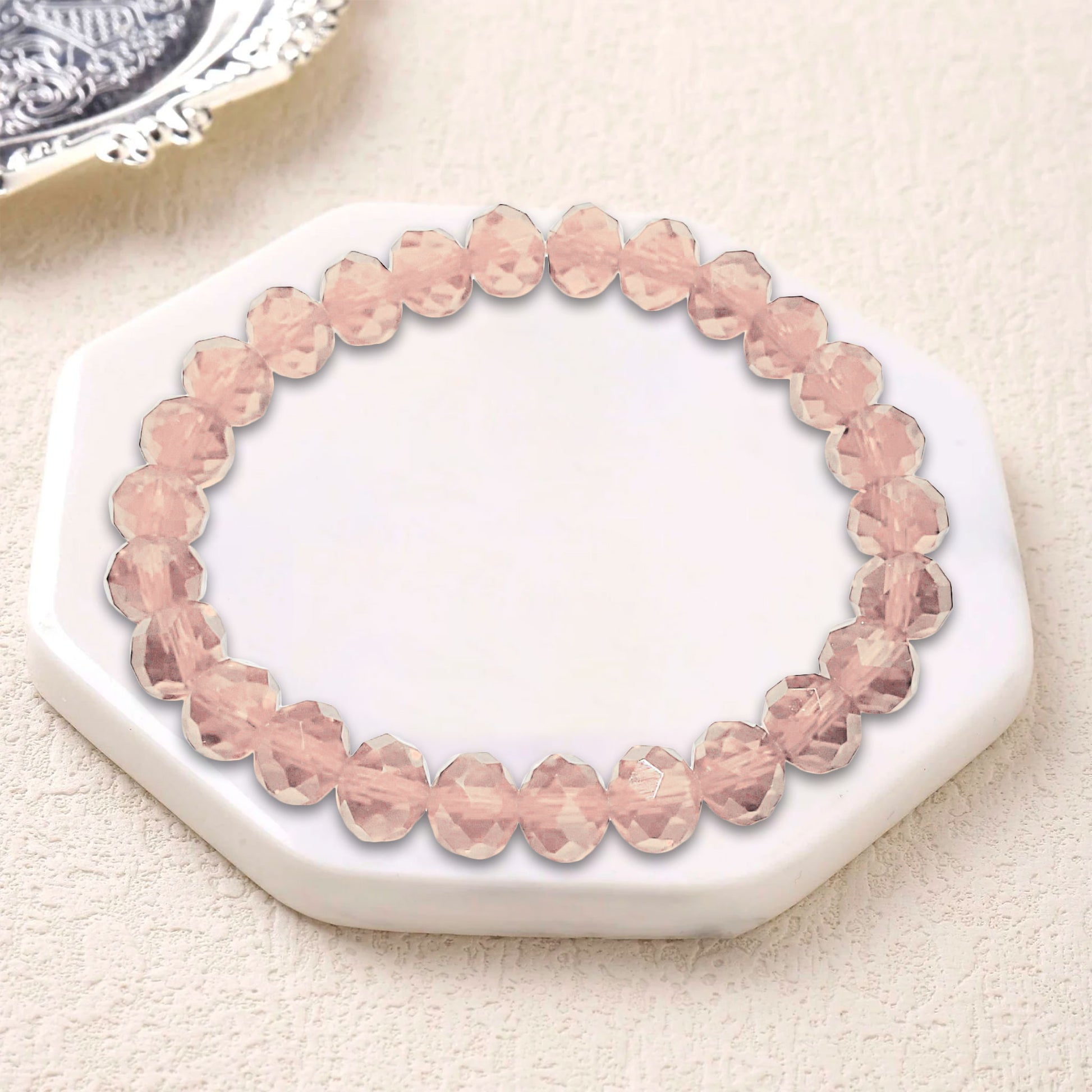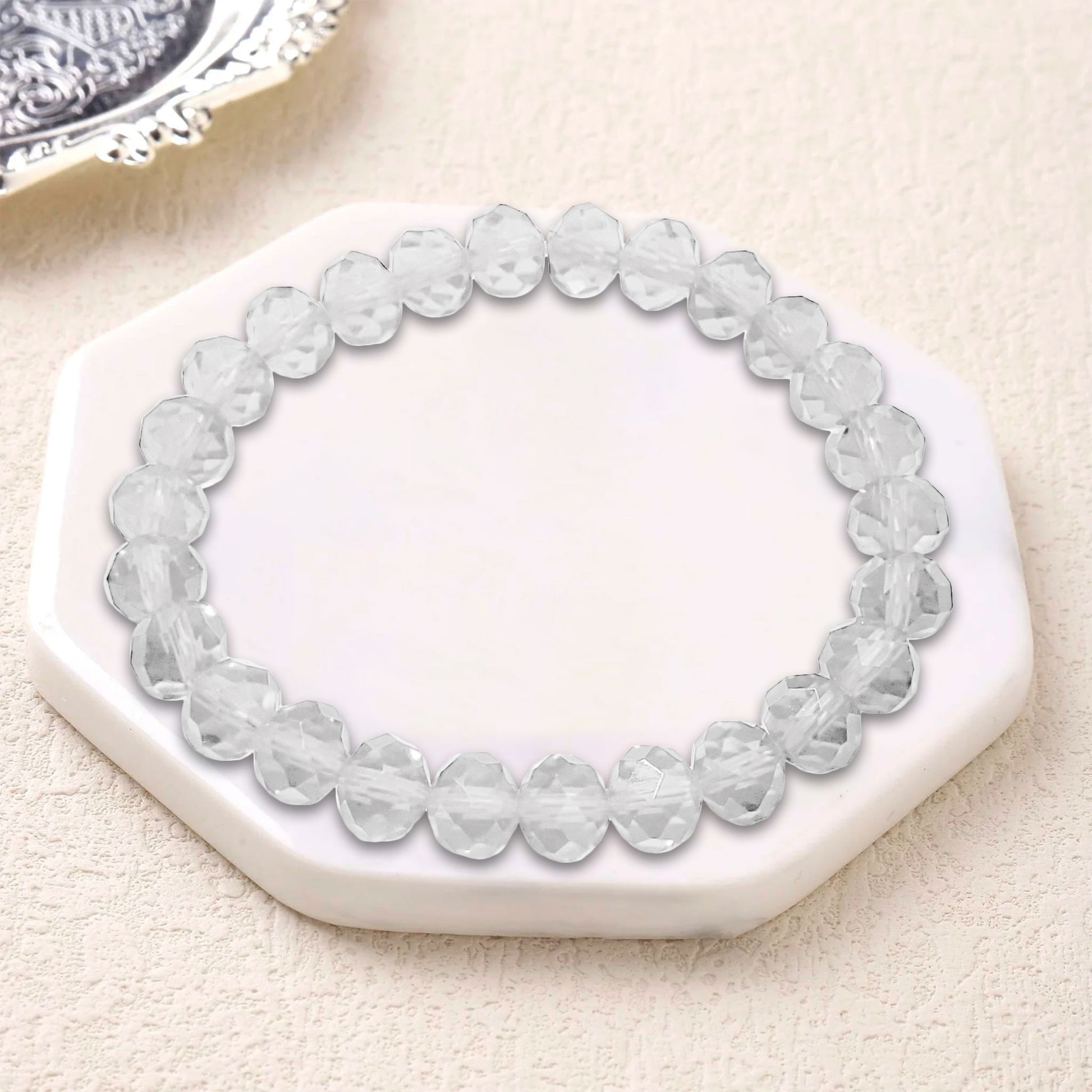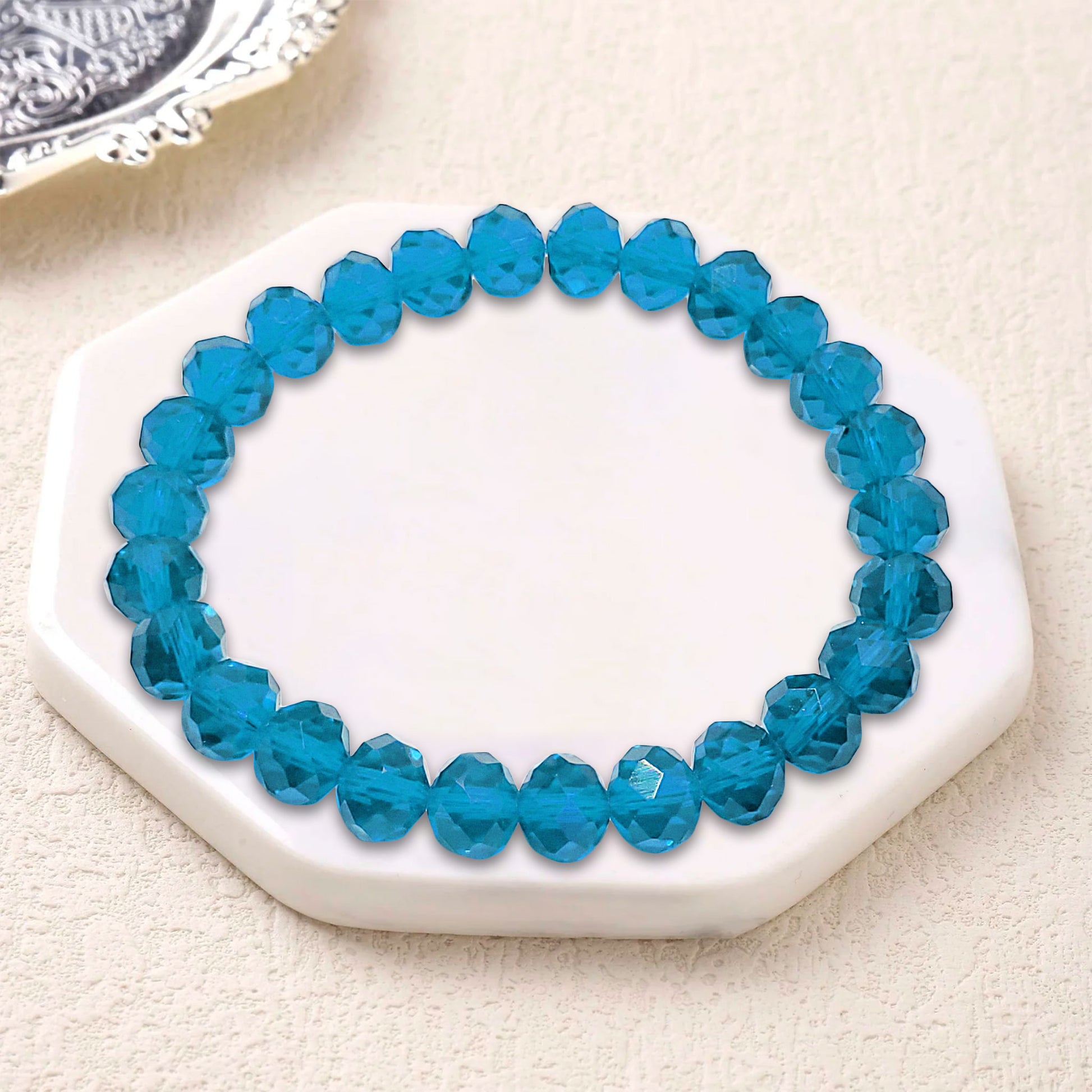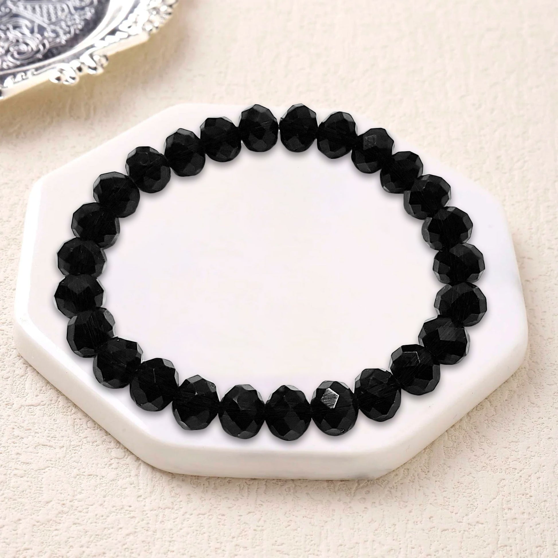 A stylish bracelet made with glossy tyre-shaped glass beads, offering a sleek and elegant look for daily wear or gifting. Lightweight, trendy, and perfect for simple yet classy styling.