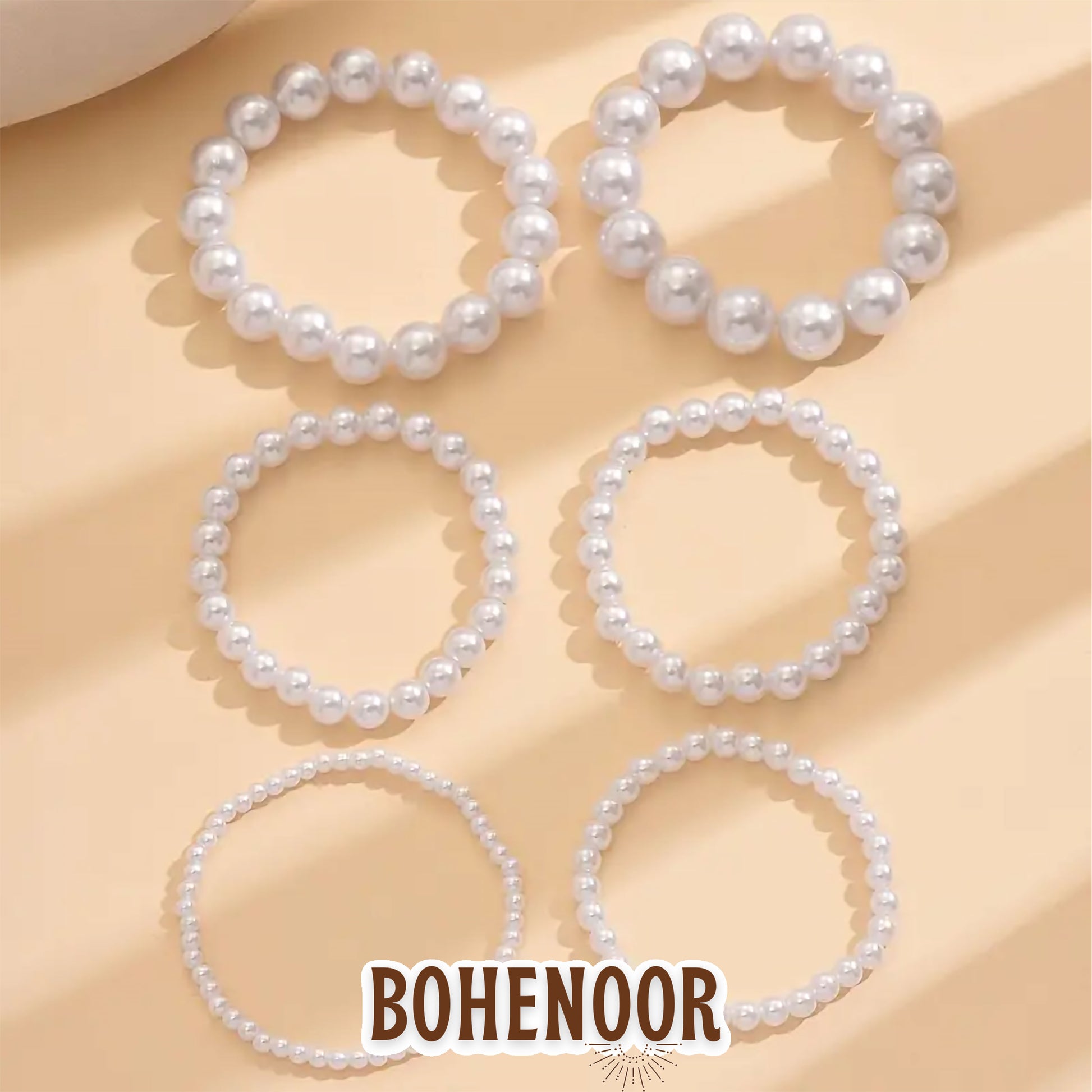 Off-White Glass Pearl Bracelet Set for Women & Girls